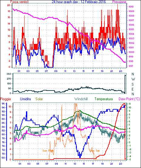 Il massimo windspeed = 18.5 km/h giorno 24 tempo 12:11
