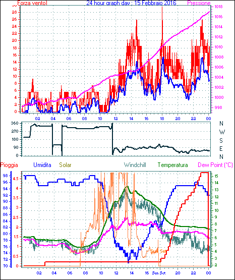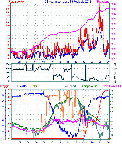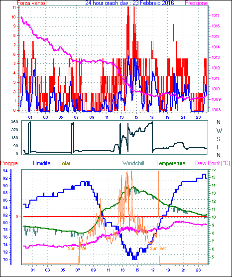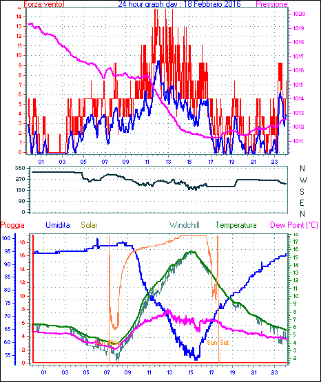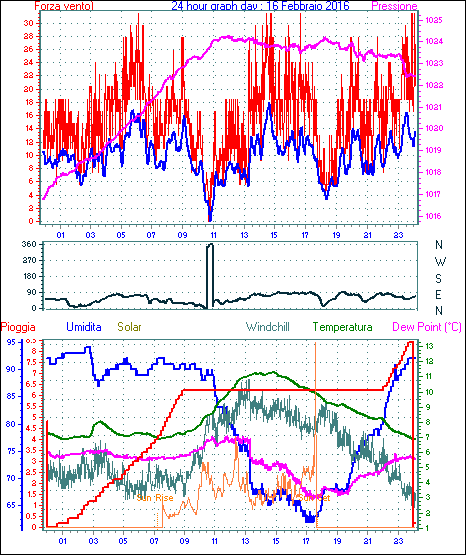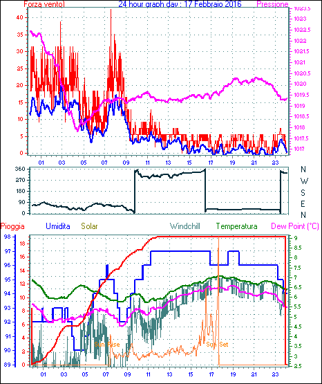 Il massimo windspeed = 24.1 kmh from 045°( NE) giorno 17 tempo 02:53