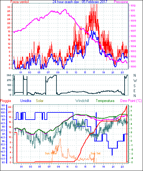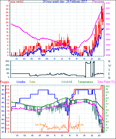 Velocità massima di raffica = 31.5 km/h from 090°( E ) giorno 24 tempo 23:48