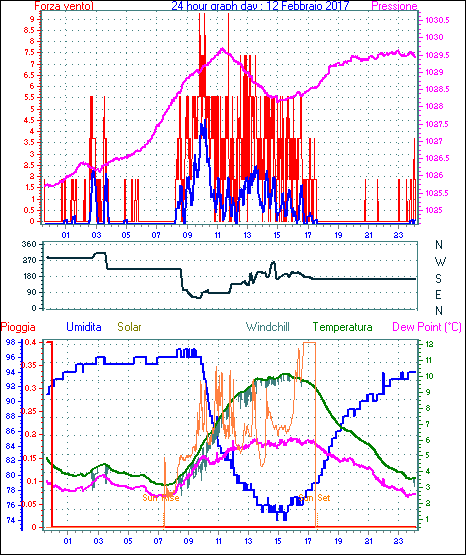 Media direzione vento = 270° ( W )
