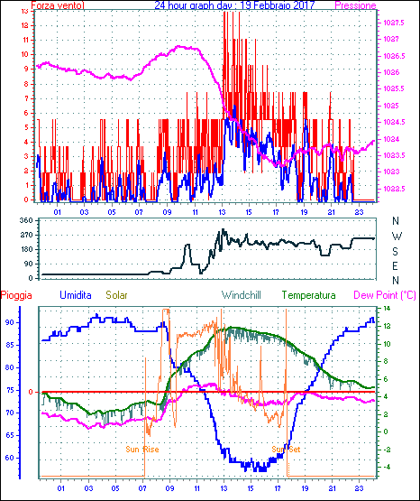 Media direzione vento = 38° ( NE)