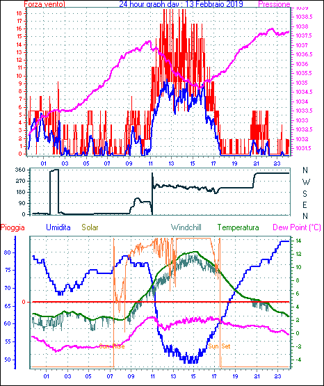 Il massimo windspeed = 13.0 km/h giorno 02 tempo 15:02