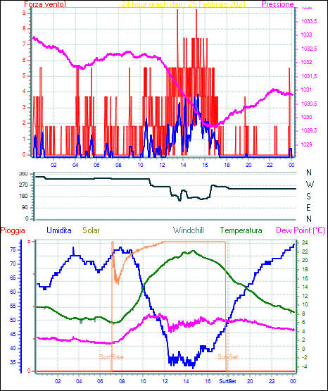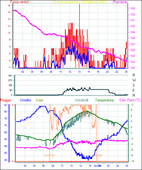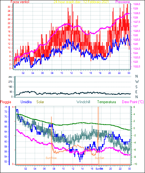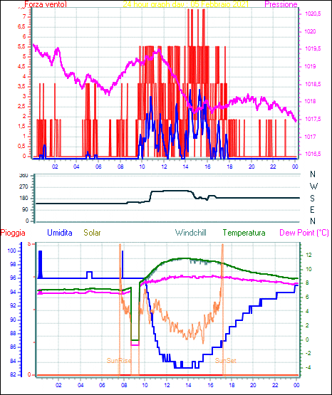 Minimum dewpoint = -0.4°C giorno 01 tempo 6:55