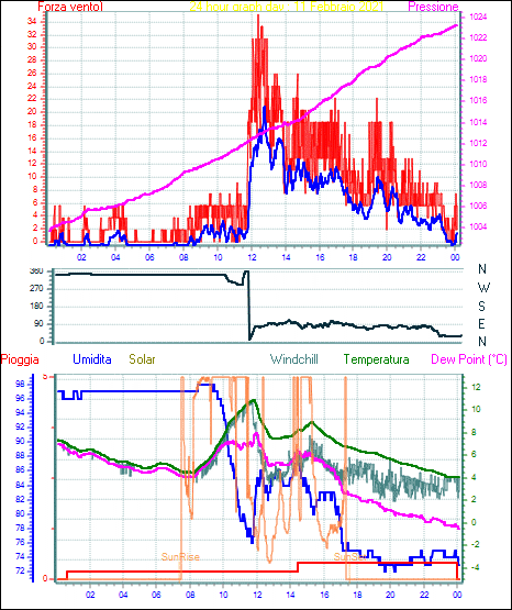 Il massimo windspeed = 24.1 kmh from 090°( E ) giorno 11 tempo 12:39