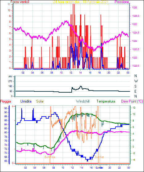 Velocità massima di raffica = 18.5 km/h da 047°( NE) giorno 01 tempo 12:55