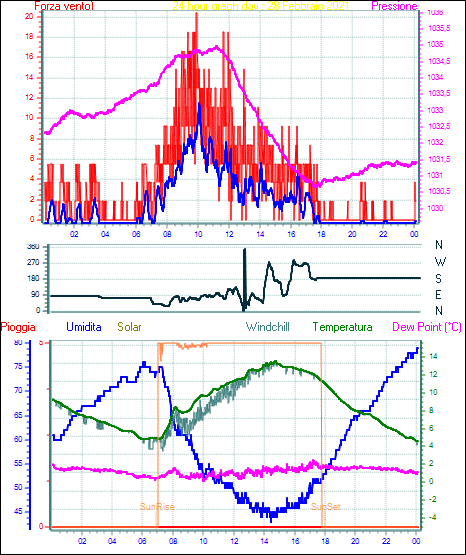 Il massimo windspeed = 14.8 km/h giorno 28 tempo 09:57
