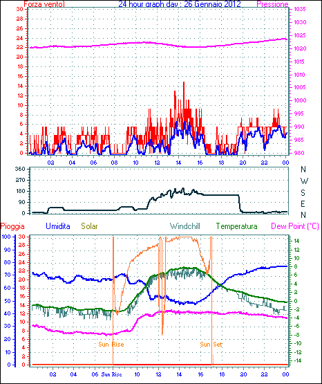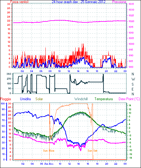 Il massimo windspeed = 25.9 kmh from 00°( N ) giorno 06 tempo 05:31