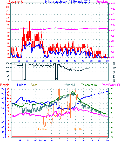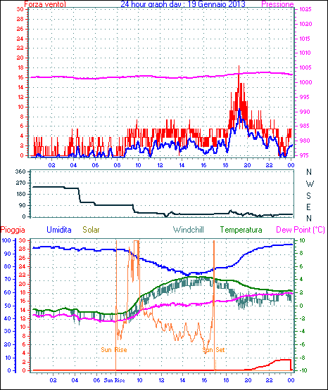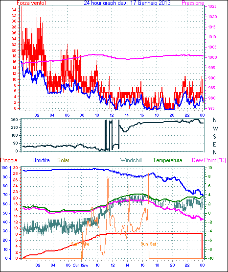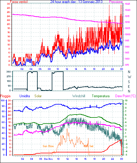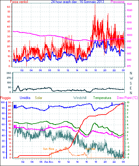 Il massimo windspeed = 35.2 kmh from 068°(ENE) giorno 16 tempo 17:50