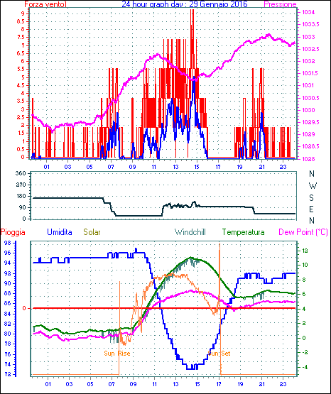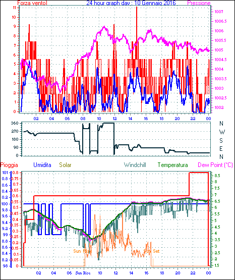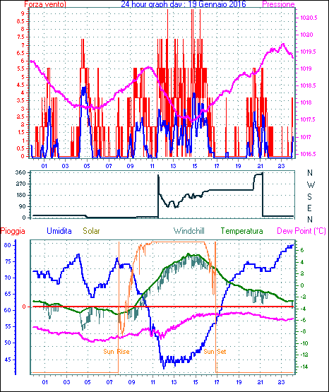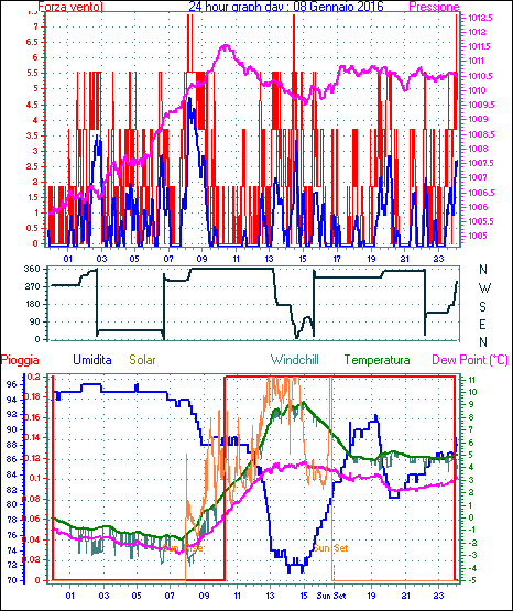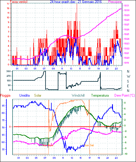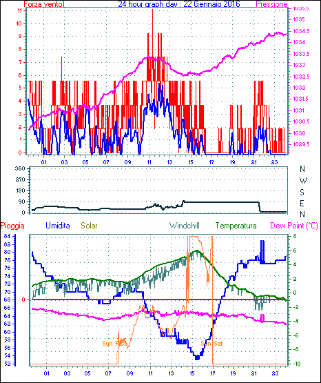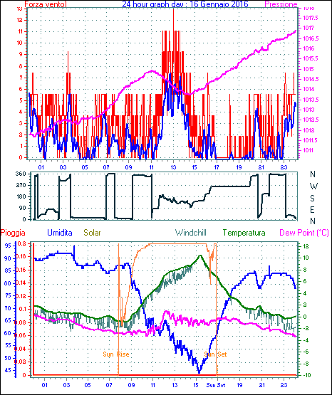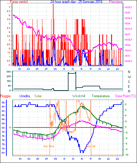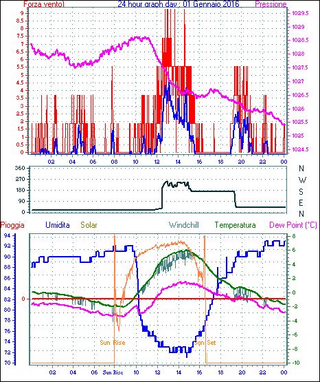 Minimum dewpoint = -3.4°C giorno 01 tempo 8:46