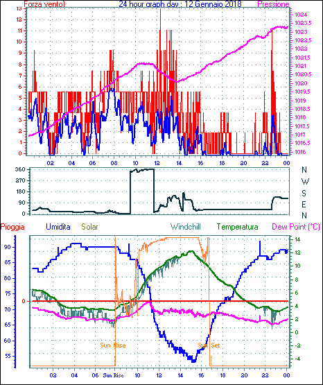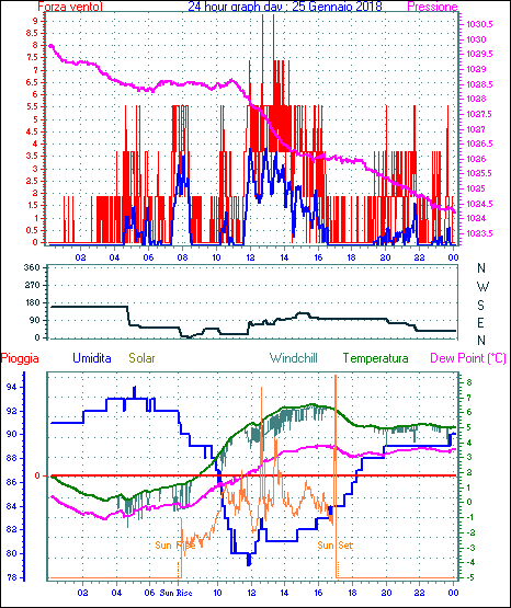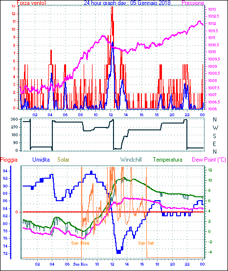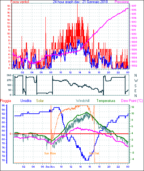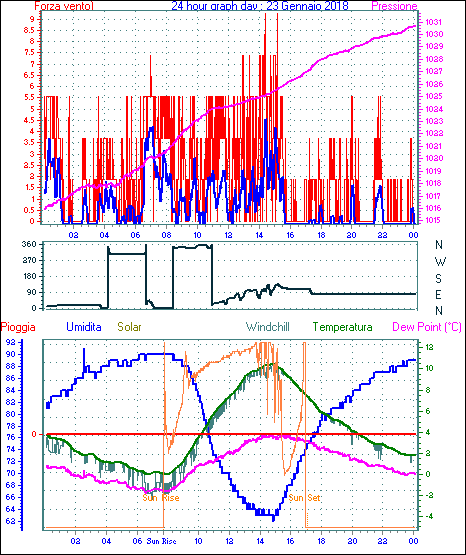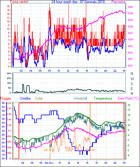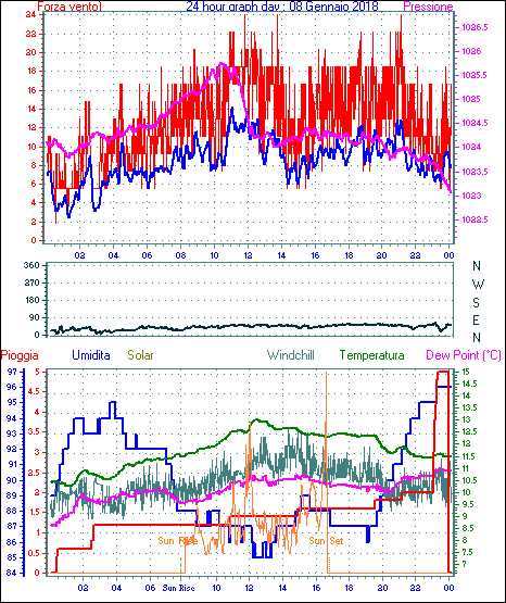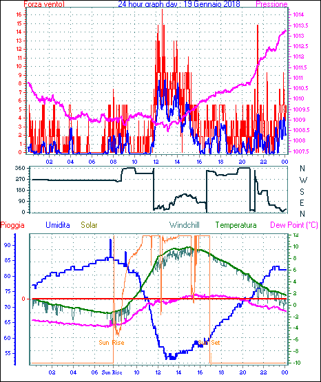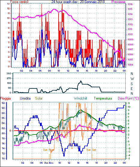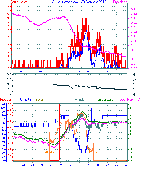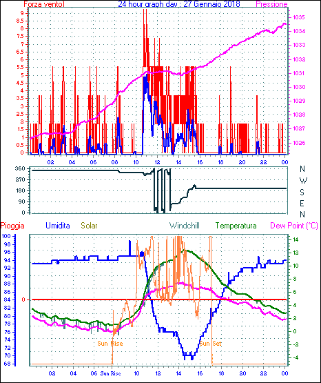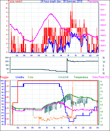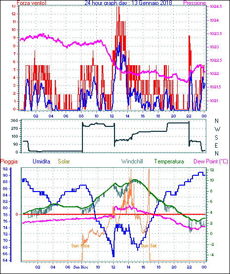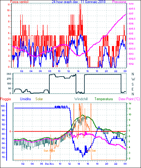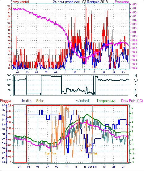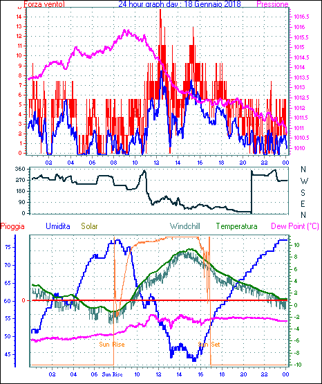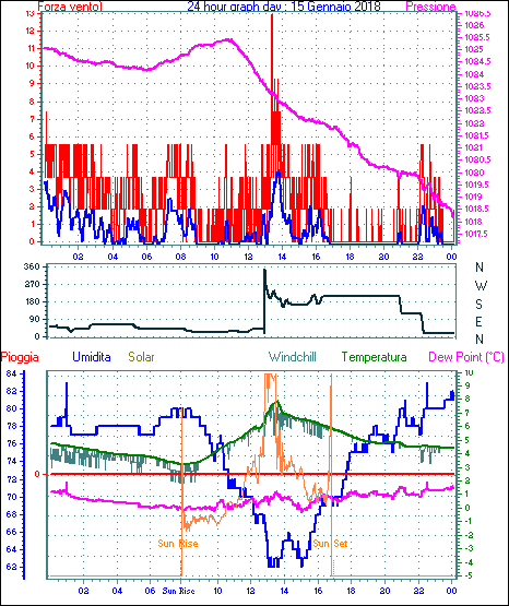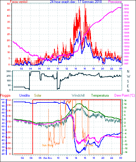 Il massimo windspeed = 31.5 kmh from 338°(NNW) giorno 17 tempo 14:47