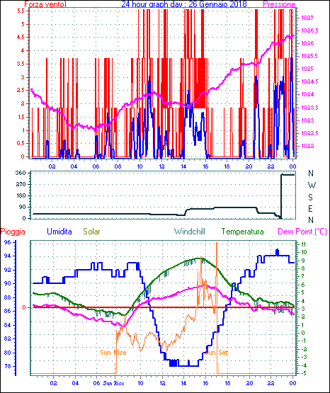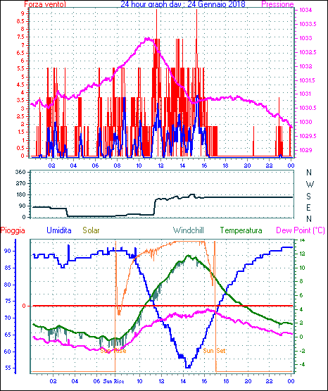 Minimum dewpoint = -1.6°C giorno 03 tempo 7:32