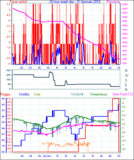 Pressione massima = 1028.2 hPa giorno 31 tempo 00:01