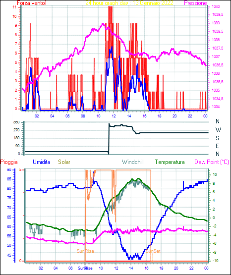 Il massimo windspeed = 13.0 km/h giorno 31 tempo 22:06