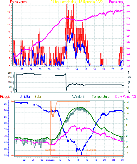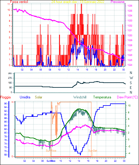 Il massimo windspeed = 18.5 kmh from 090°( E ) giorno 06 tempo 00:32