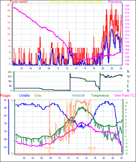 Pressione massima = 1019.6 hPa giorno 31 tempo 00:06