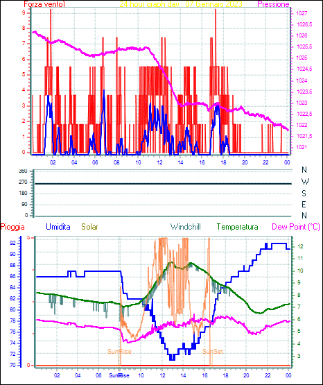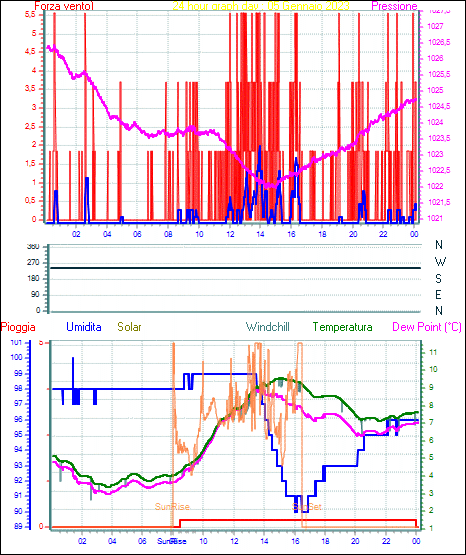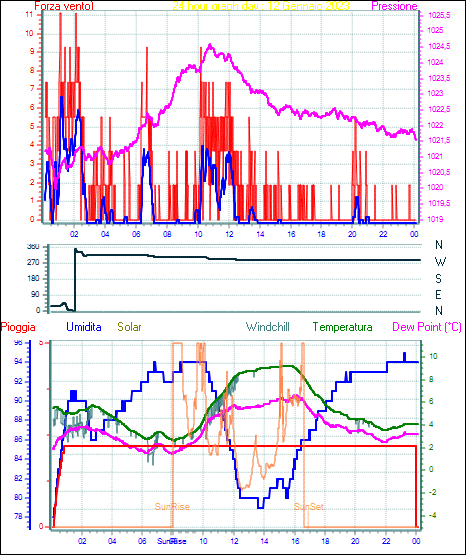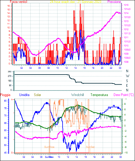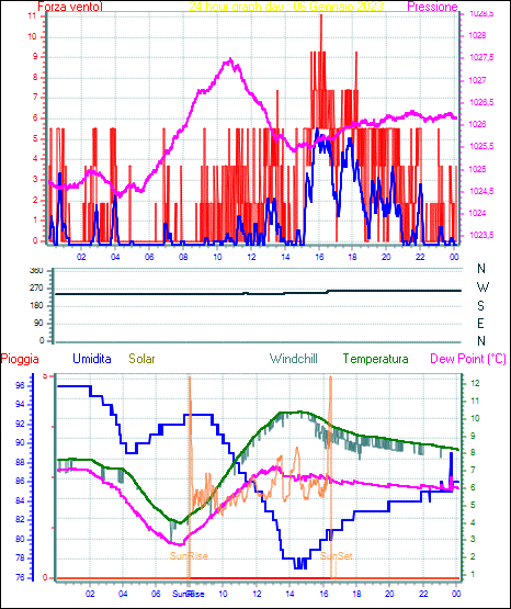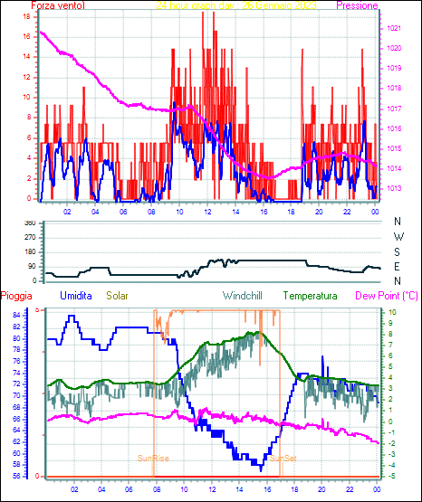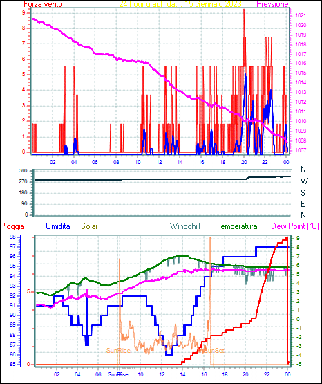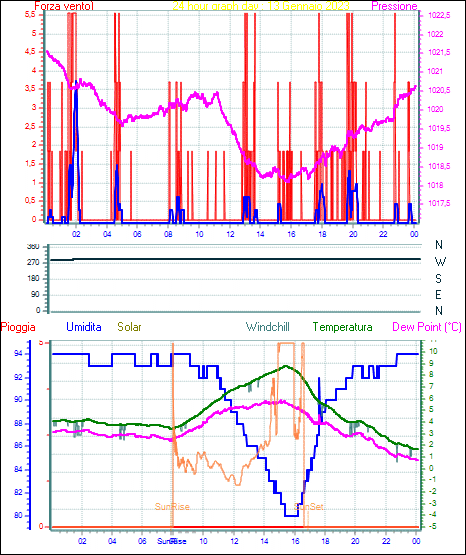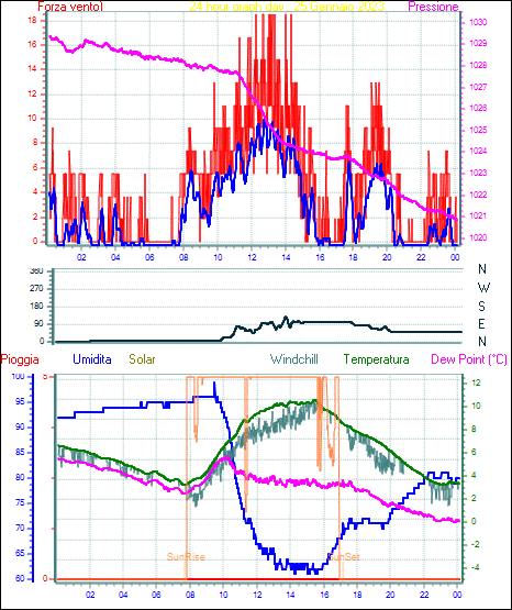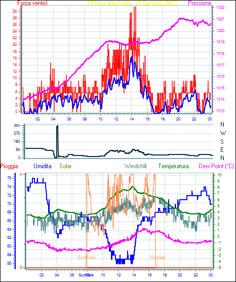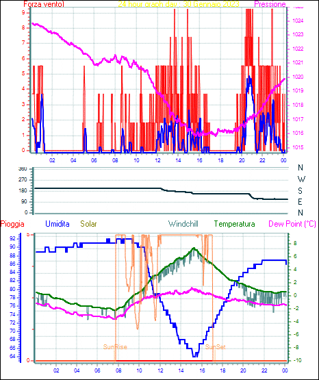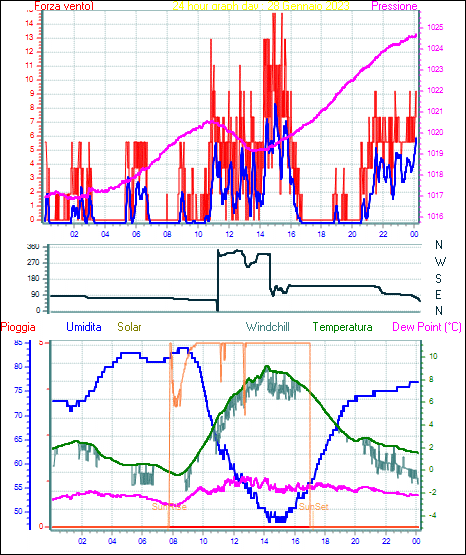 Il massimo windspeed = 33.3 kmh from 060°(ENE) giorno 23 tempo 17:30