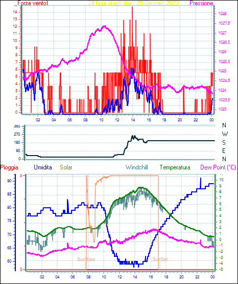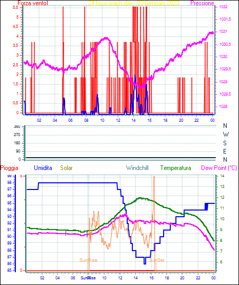 Minimum dewpoint = -3.6°C giorno 31 tempo 6:35