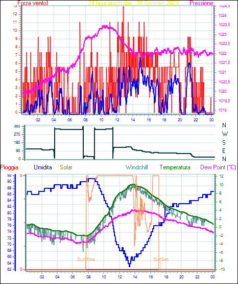 Pressione massima = 1023.5 hPa giorno 31 tempo 10:43