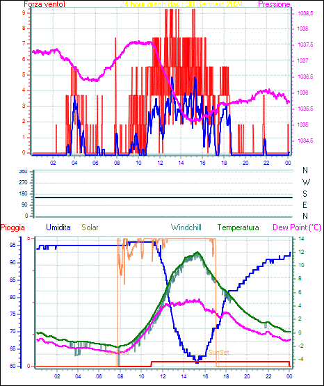 Pressione massima = 1037.6 hPa giorno 30 tempo 11:22