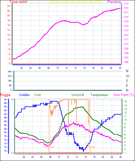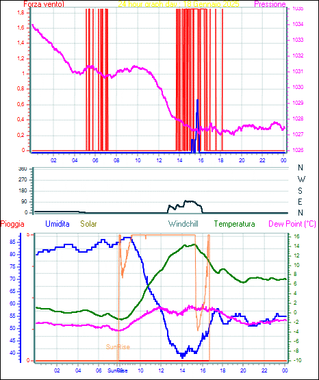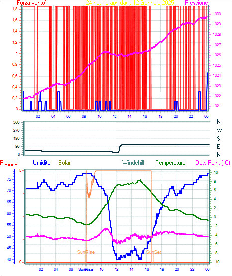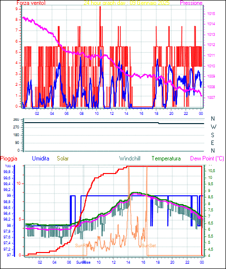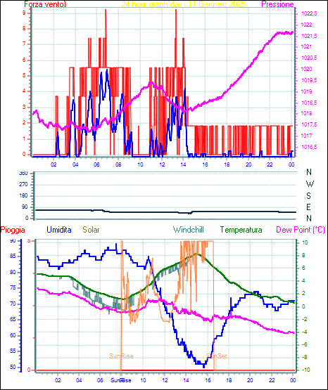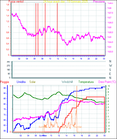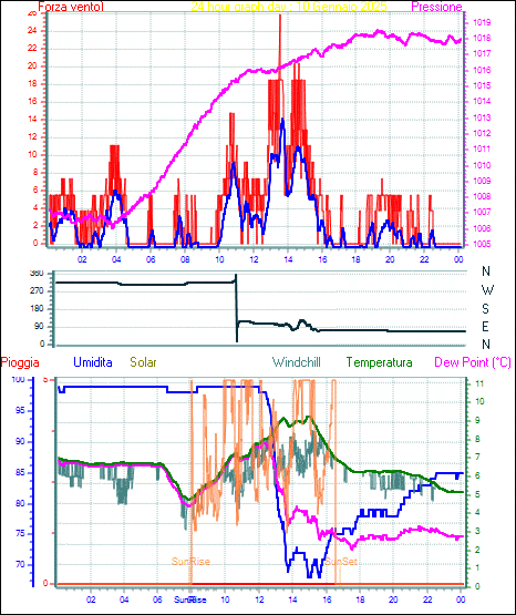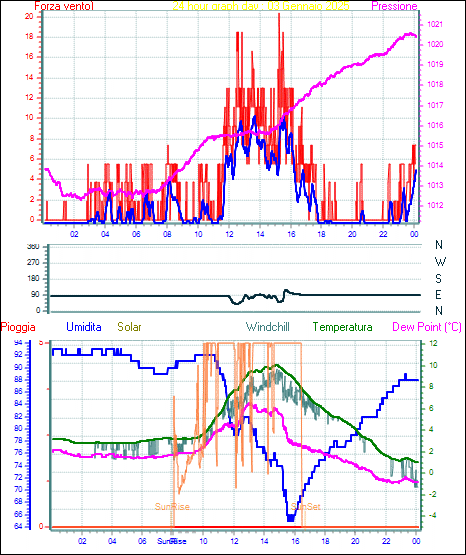 Il massimo windspeed = 16.7 kmh from 101°( E ) giorno 10 tempo 13:34