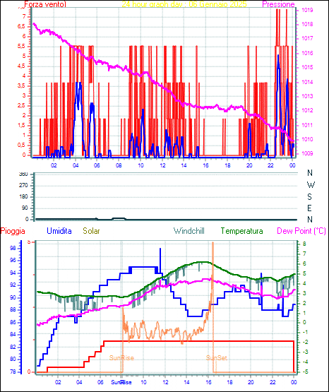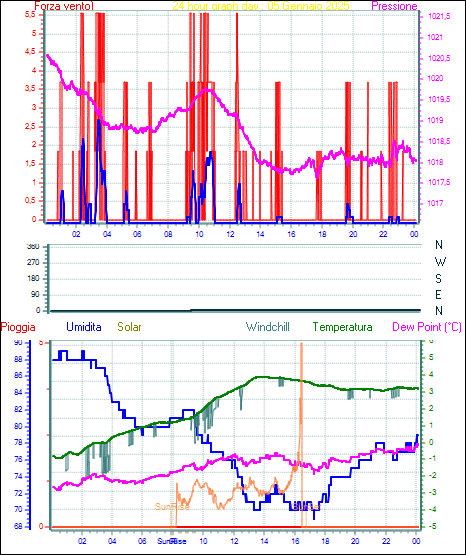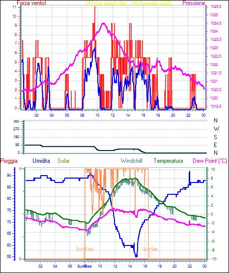 Minimum dewpoint = -3.6°C giorno 04 tempo 8:24