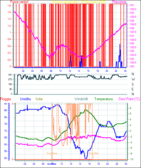 Minimum dewpoint = -0.8°C giorno 02 tempo 6:17