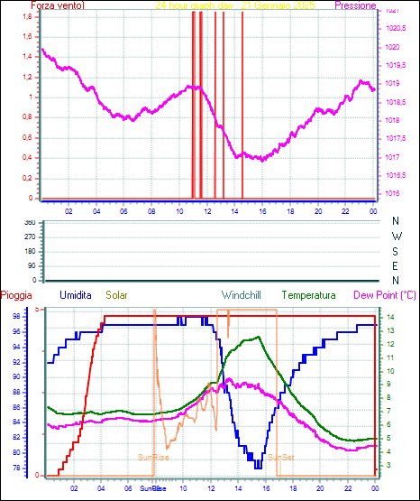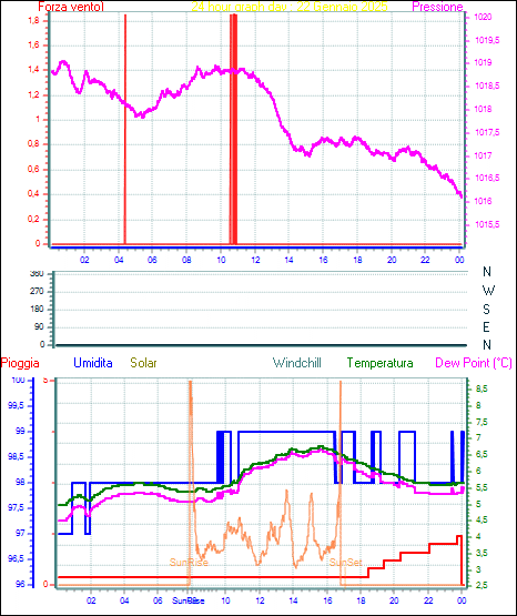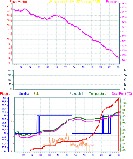 Massima pioggia per minuto = 0.2 mm giorno 31 tempo 22:38