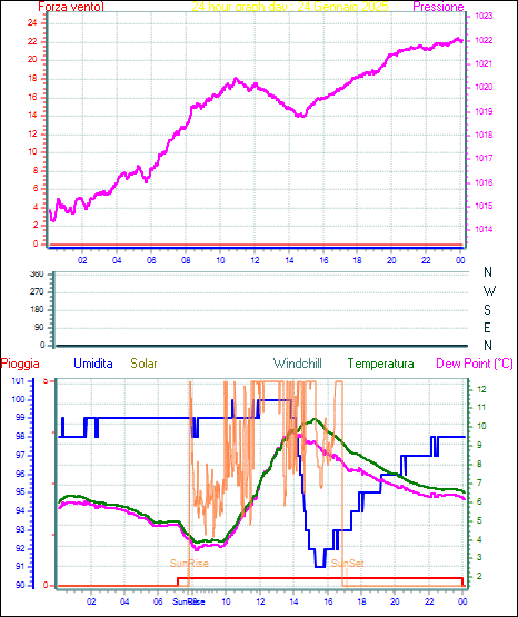 Massima pioggia per minuto = 0.0 mm giorno 02 tempo 23:59