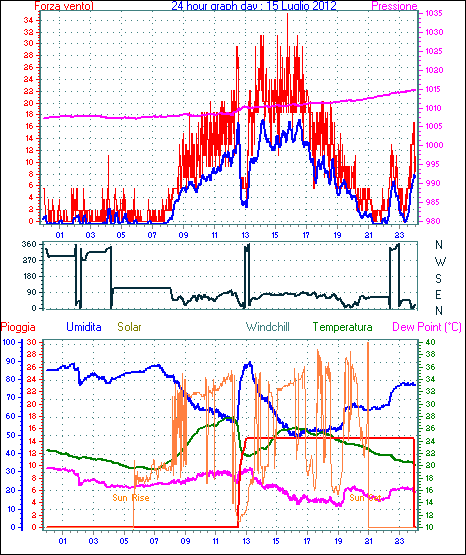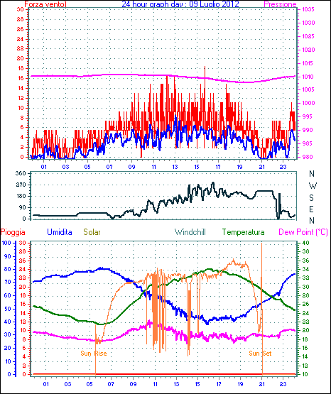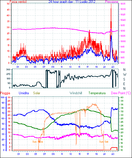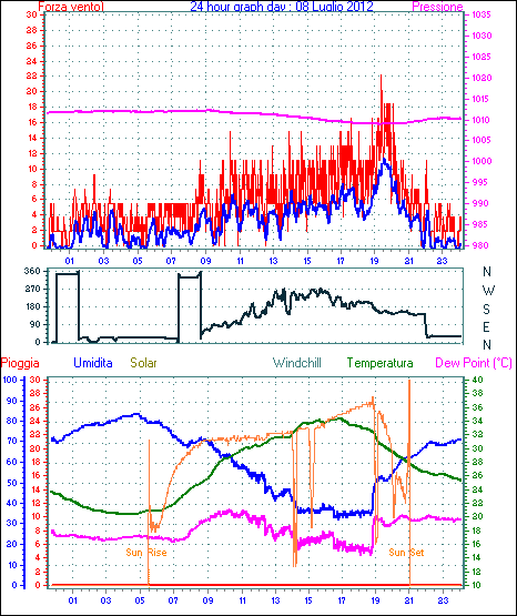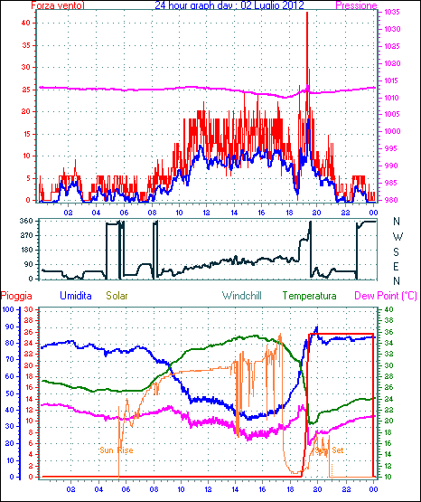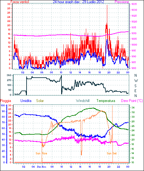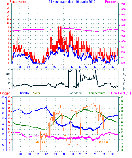 Il massimo windspeed = 38.9 kmh from 248°(WSW) giorno 21 tempo 12:03