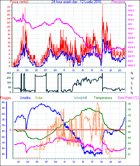 Barómetro minima = 1003.1 hPa giorno 13 tempo 19:40