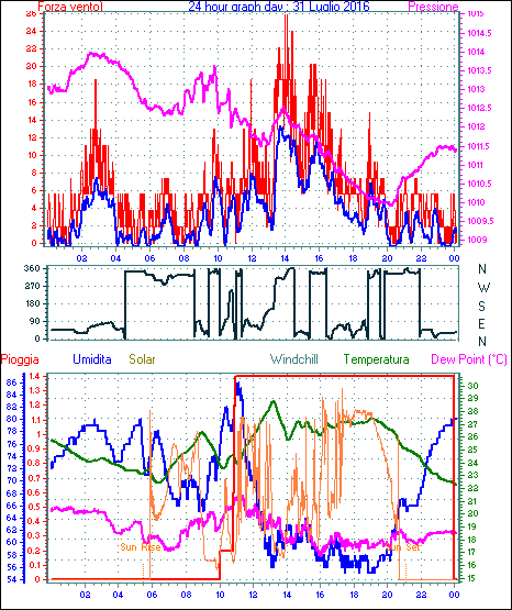 Il massimo windspeed = 16.6 km/h giorno 31 tempo 14:24