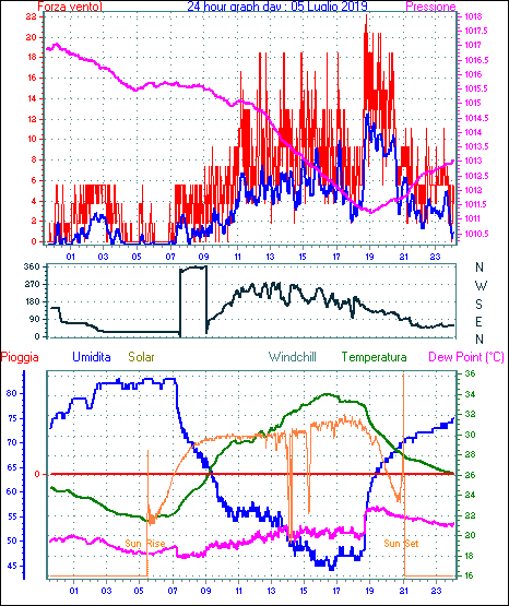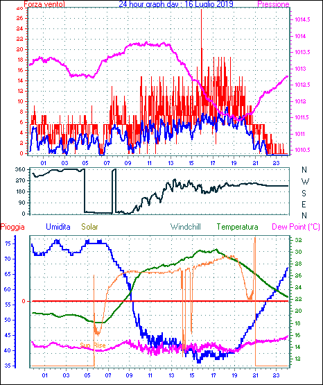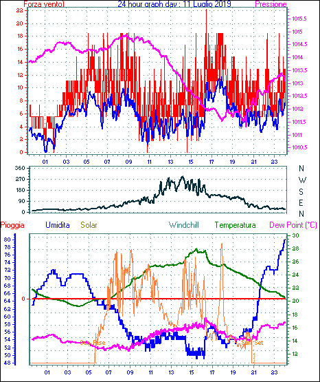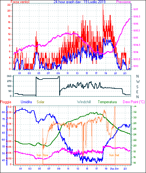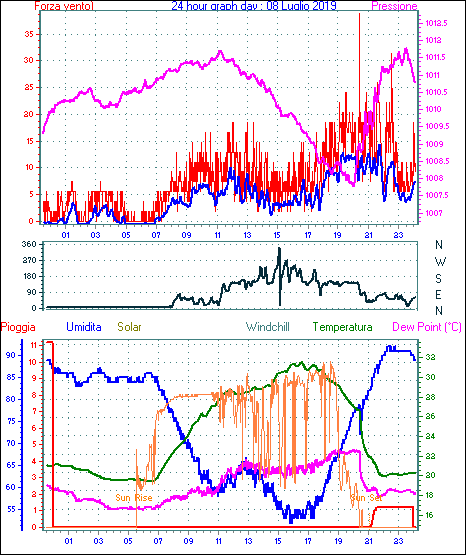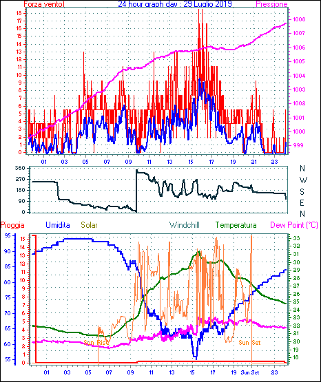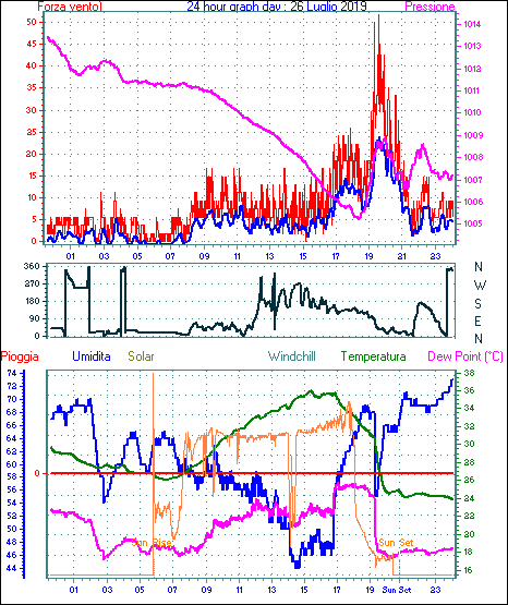 Il massimo windspeed = 33.3 kmh from 045°( NE) giorno 26 tempo 19:20