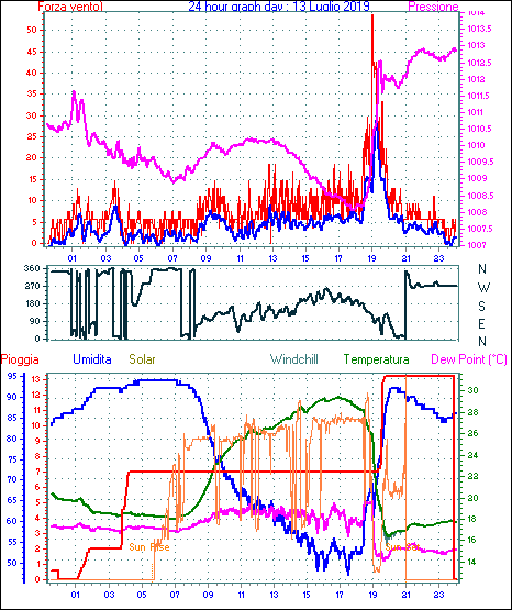 Il massimo windspeed = 13.0 km/h giorno 30 tempo 22:58