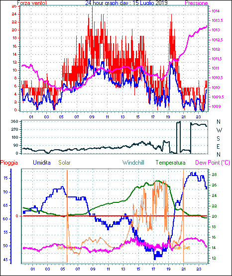 Velocità massima di raffica = 24.1 km/h da 135°( SE) giorno 01 tempo 15:43