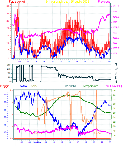 Maximum dewpoint = 24.4°C giorno 01 tempo 16:58