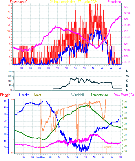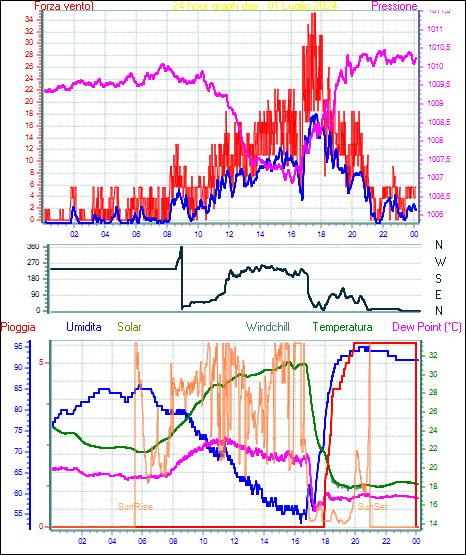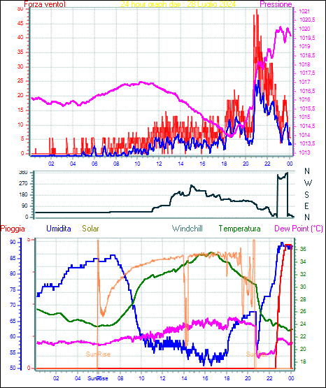 Il massimo windspeed = 31.5 kmh from 034°( NE) giorno 28 tempo 21:05