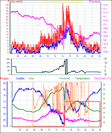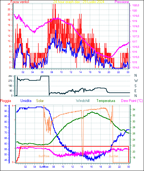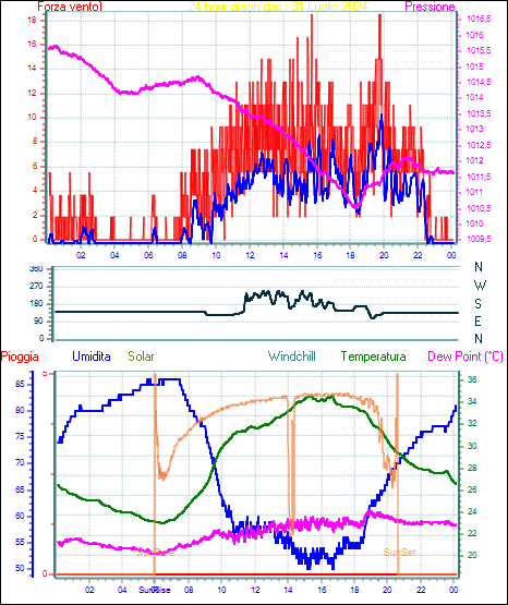 Maximum dewpoint = 24.4°C giorno 31 tempo 18:55