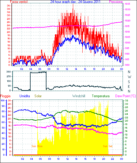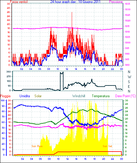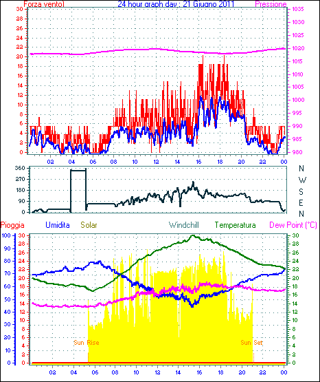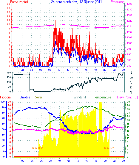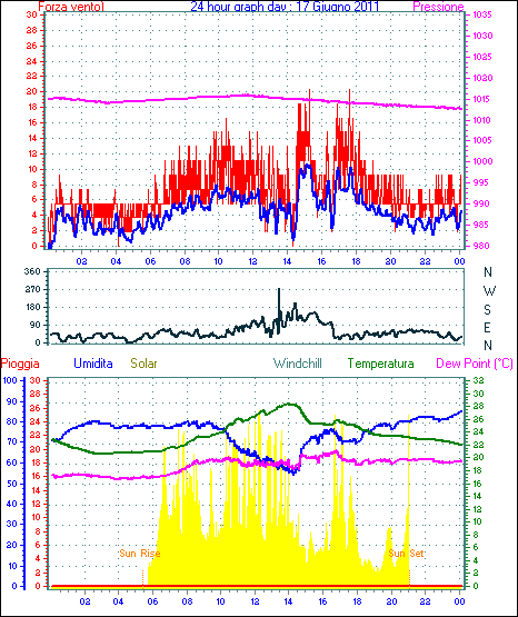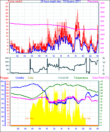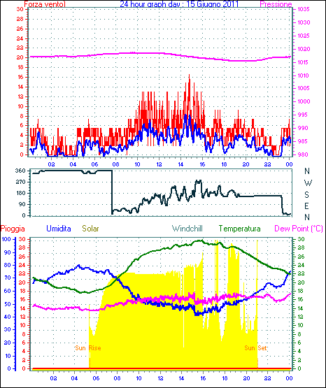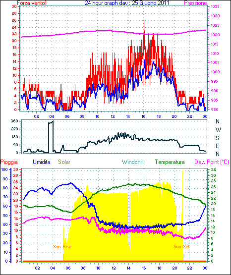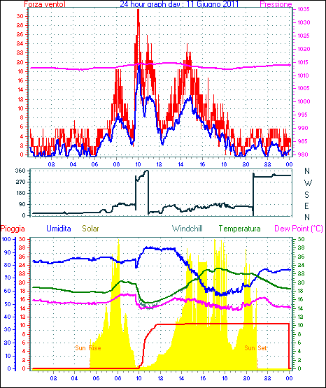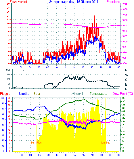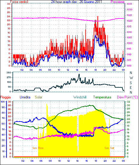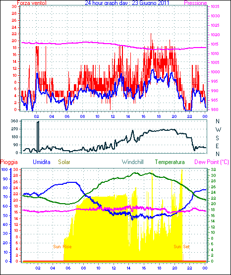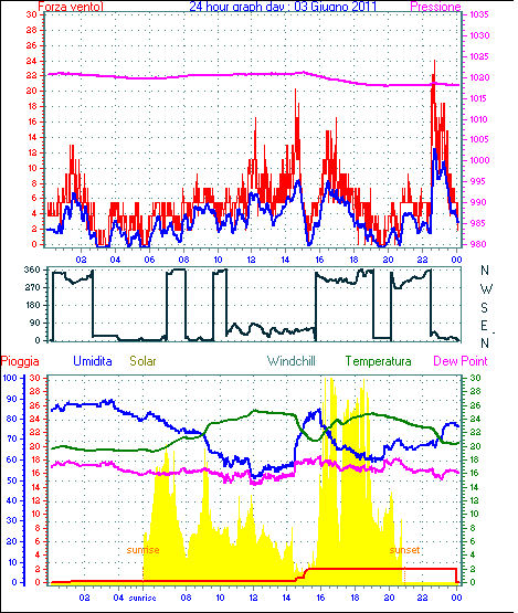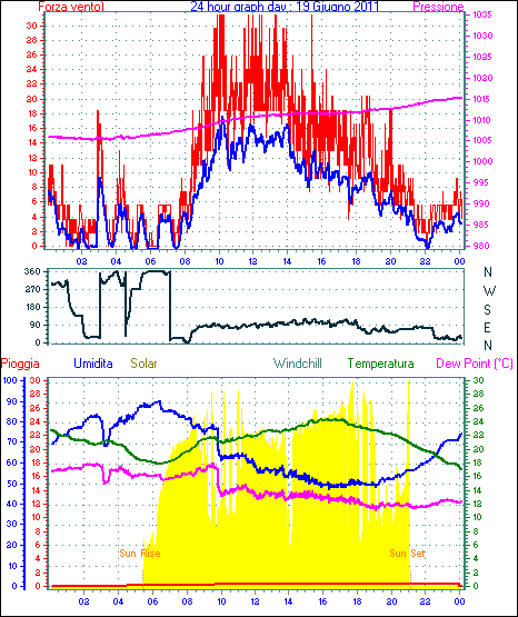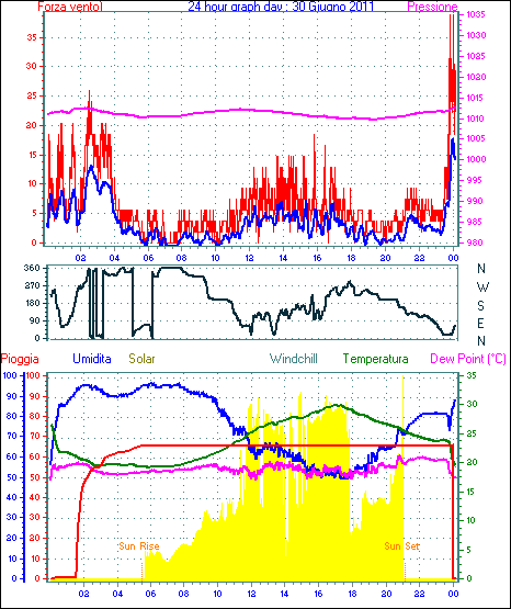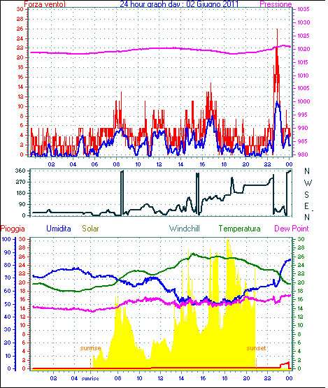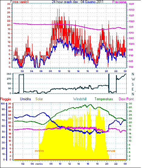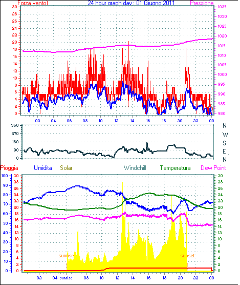 Il massimo windspeed = 24.1 kmh from 023°(NNE) giorno 30 tempo 23:53