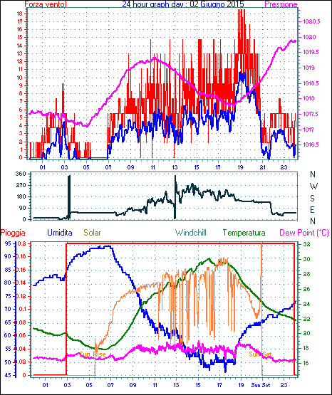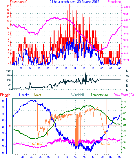 Minimum dewpoint = 16.3°C giorno 30 tempo 5:32
