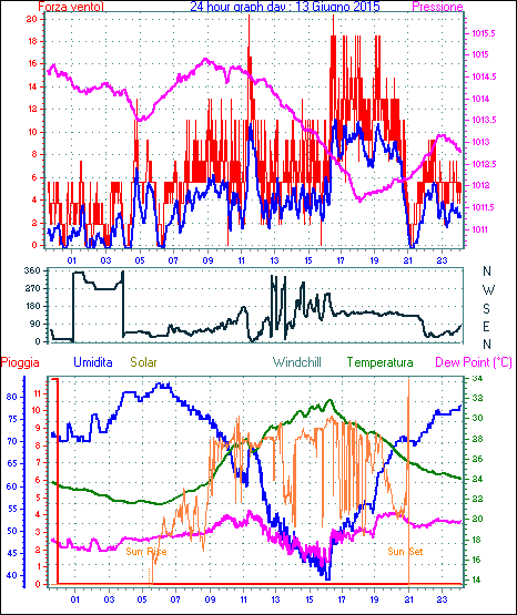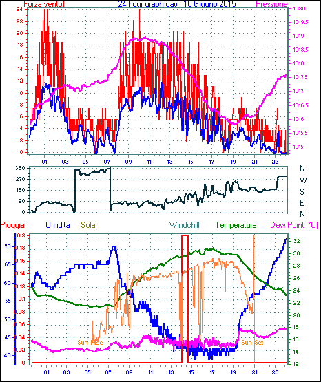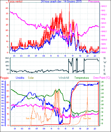 Velocità massima di raffica = 44.4 km/h from 270°( W ) giorno 14 tempo 16:05
