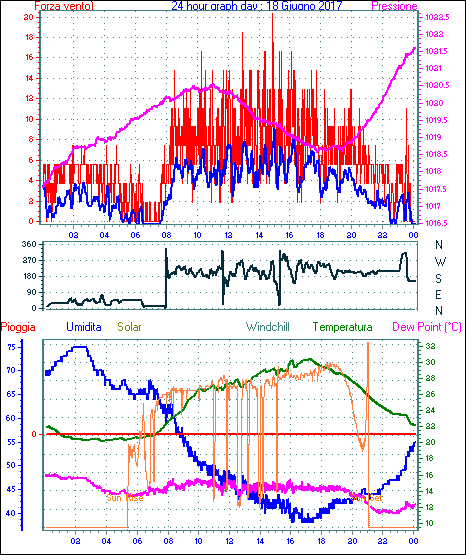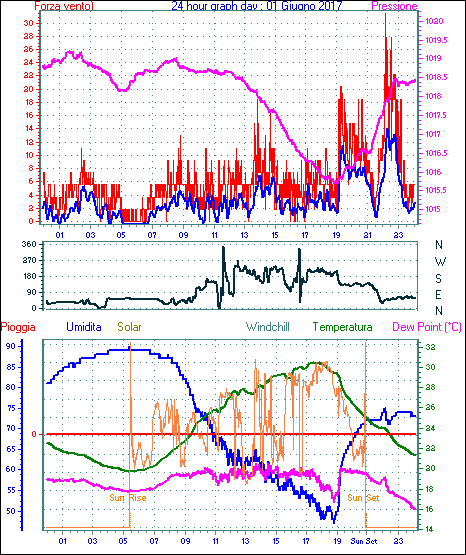 Il massimo windspeed = 18.5 km/h giorno 30 tempo 21:54
