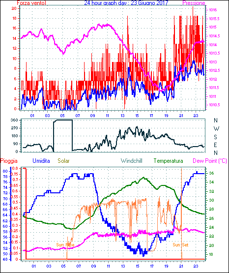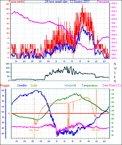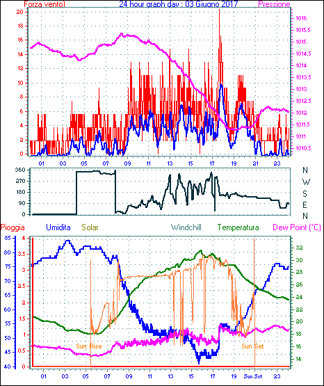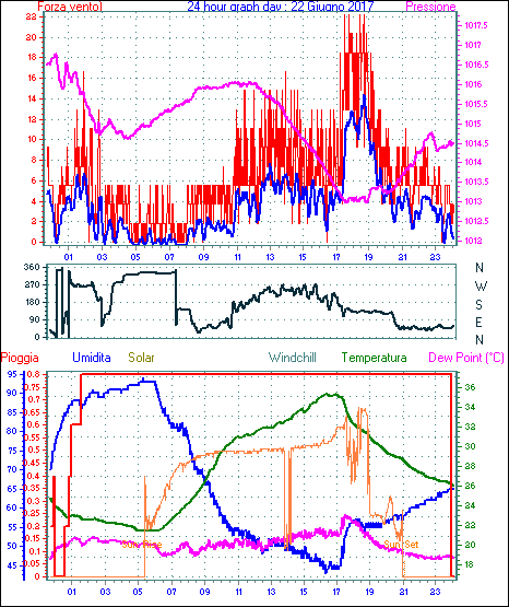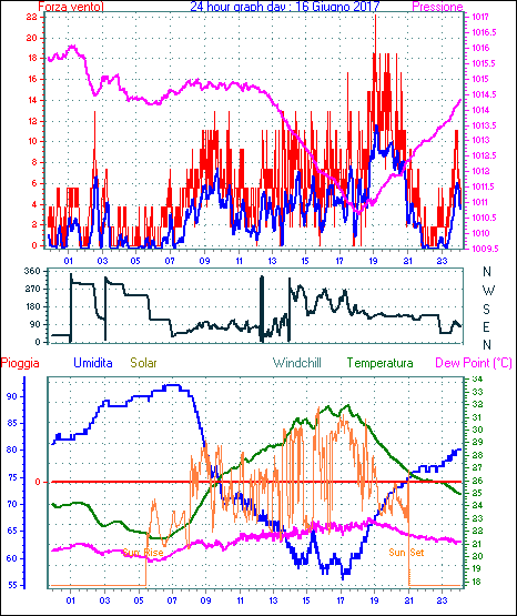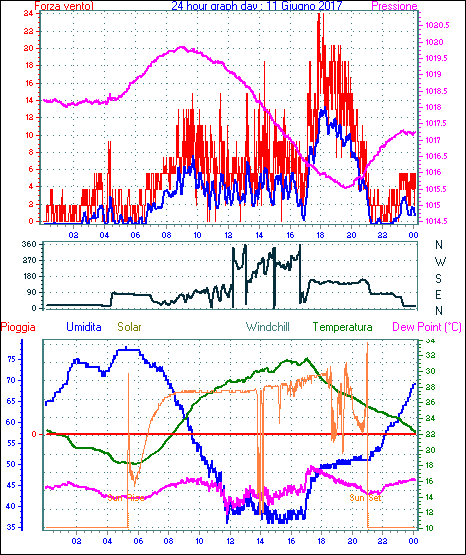 Il massimo windspeed = 16.6 km/h giorno 01 tempo 22:44