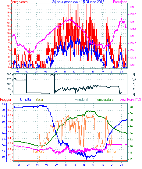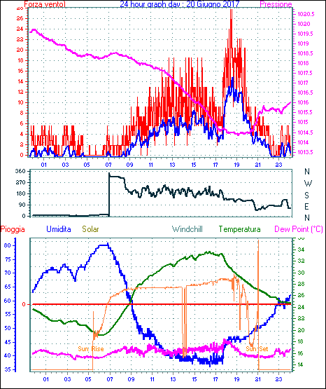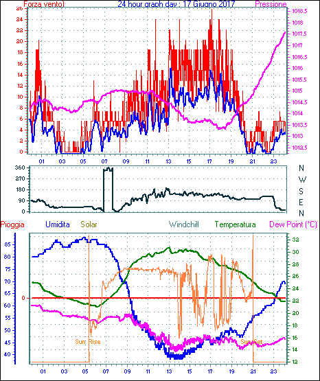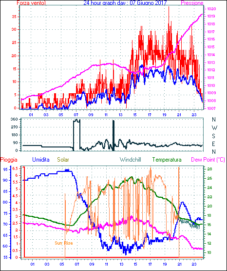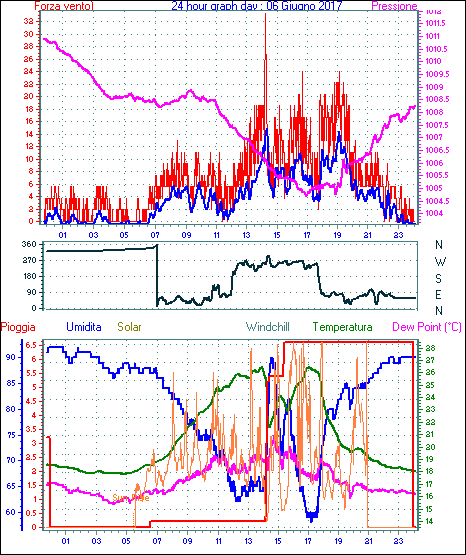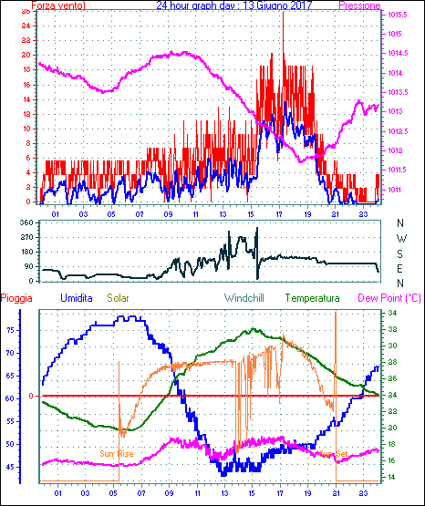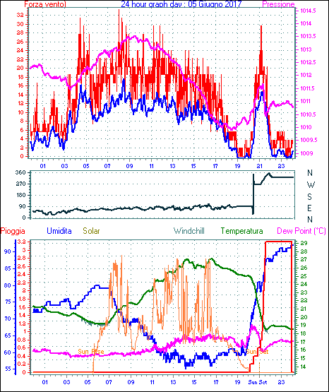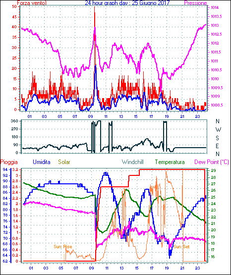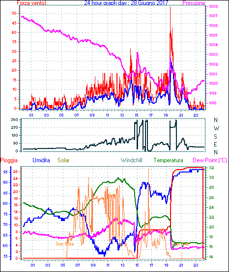 Il massimo windspeed = 38.9 kmh from 270°( W ) giorno 28 tempo 19:34