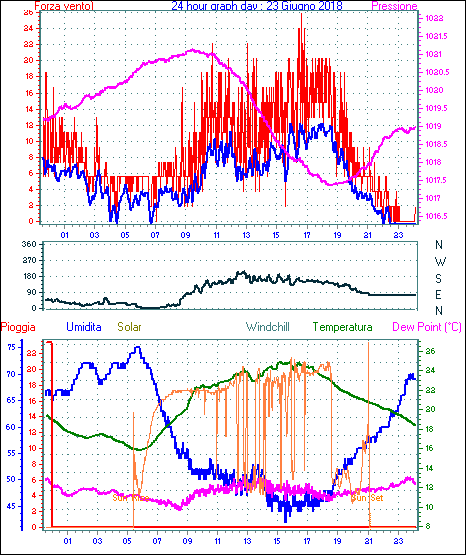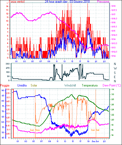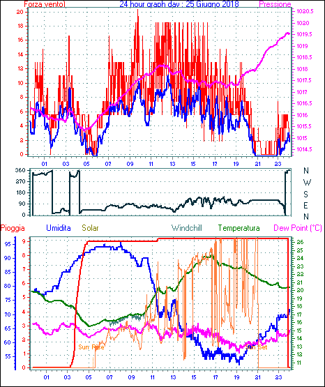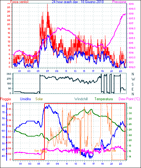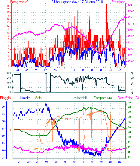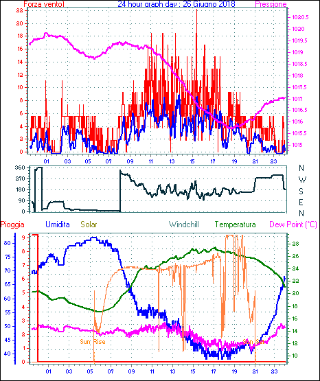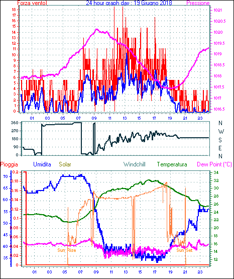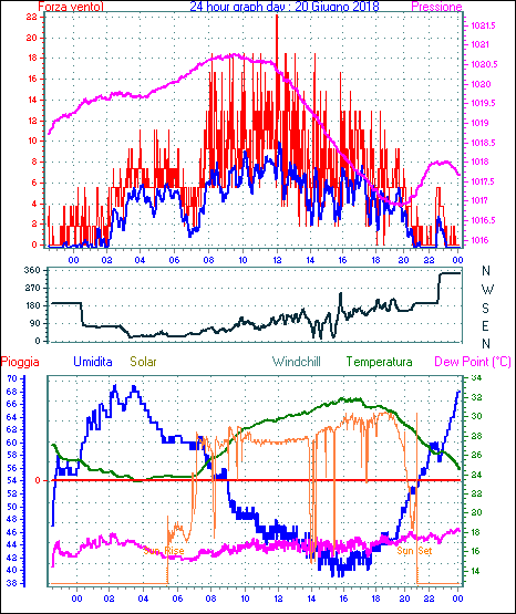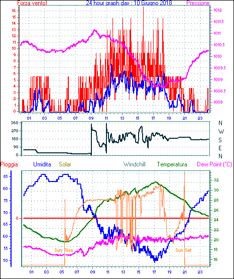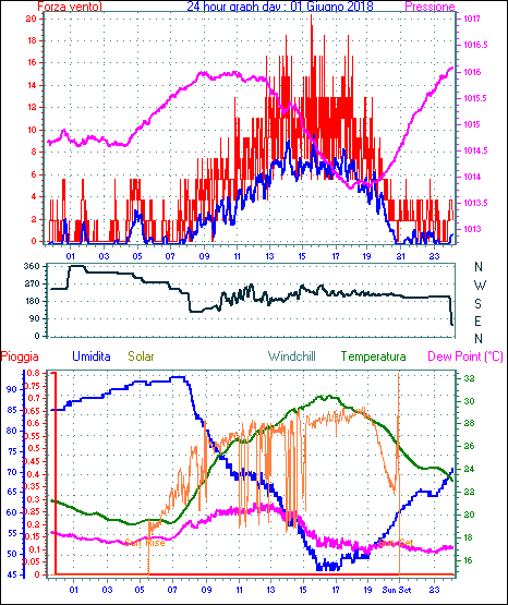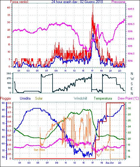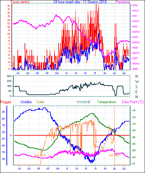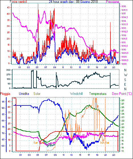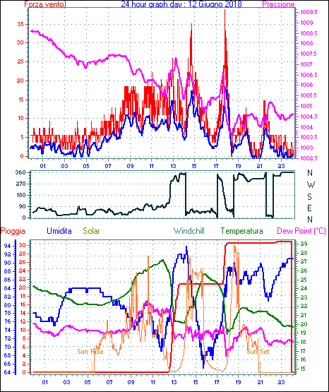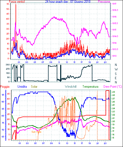Il massimo windspeed = 31.5 kmh from 293°(WNW) giorno 07 tempo 00:15