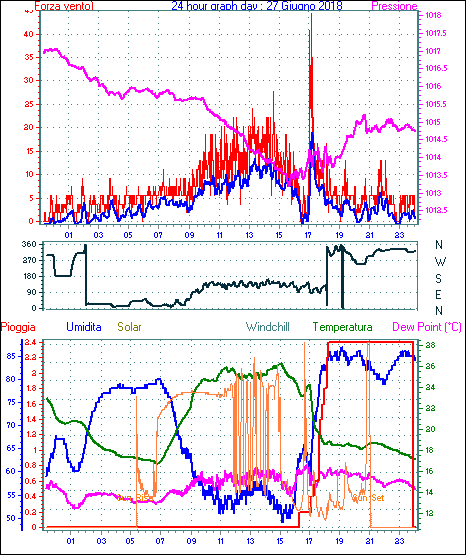 Il massimo windspeed = 27.8 km/h giorno 02 tempo 17:06