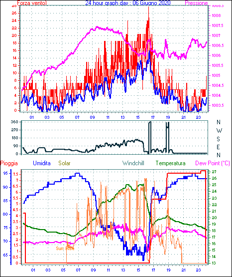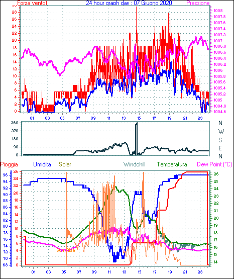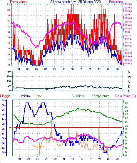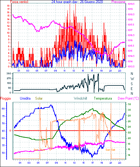 Il massimo windspeed = 24.1 kmh from 068°(ENE) giorno 29 tempo 17:18