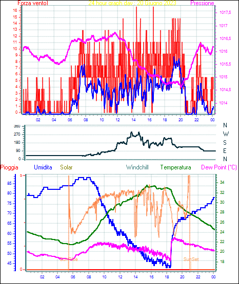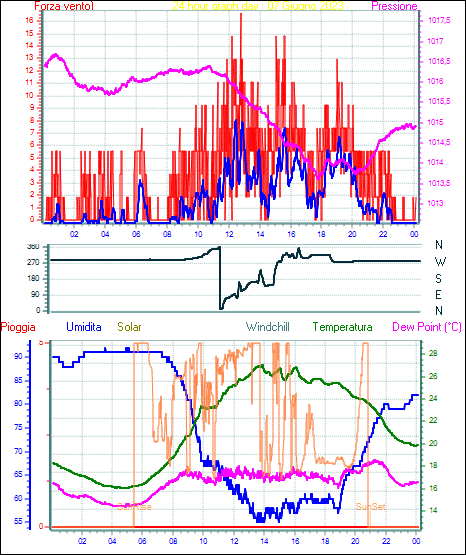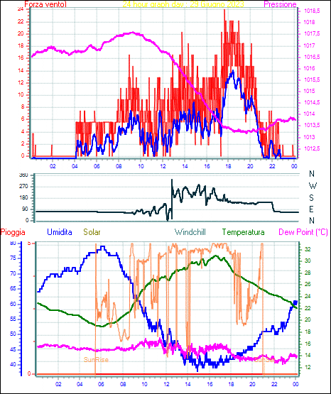 Il massimo windspeed = 16.7 km/h giorno 29 tempo 18:21