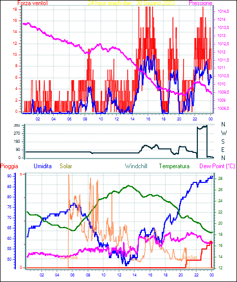 Velocità massima di raffica = 18.5 km/h da 338°(NNW) giorno 30 tempo 23:03