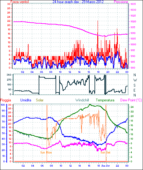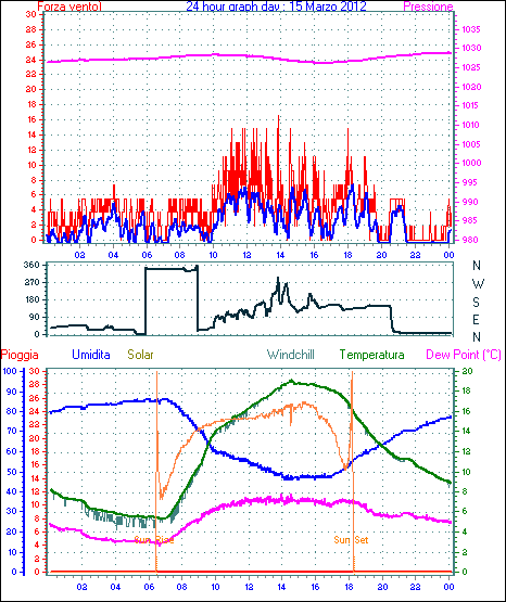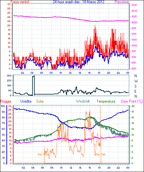 Velocità massima di raffica = 18.5 km/h da 203°(SSW) giorno 01 tempo 15:31