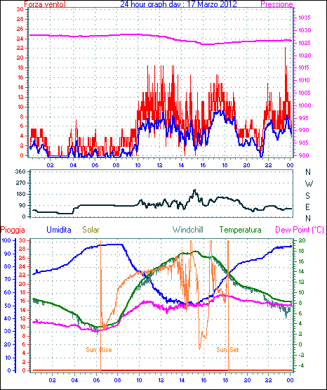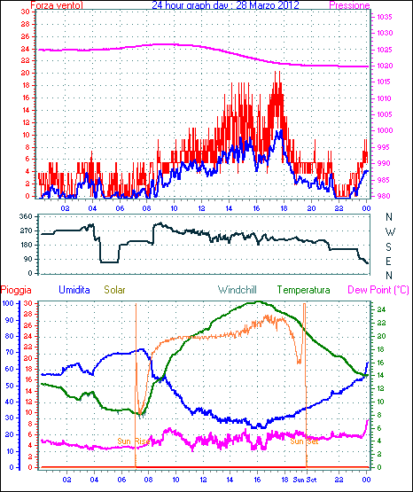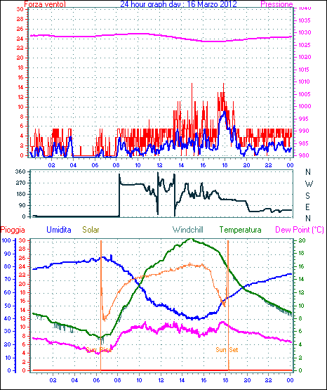 Velocità massima di raffica = 16.6 km/h da 158°(SSE) giorno 03 tempo 12:37